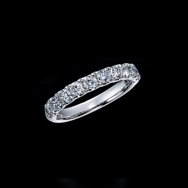 這款設計豪華地鑲嵌了 9 顆完美閃耀的鑽石,讓您毫無保留地欣賞其每一分光芒。戒圈形狀帶有圓潤的弧度,能自然貼合手指線條。